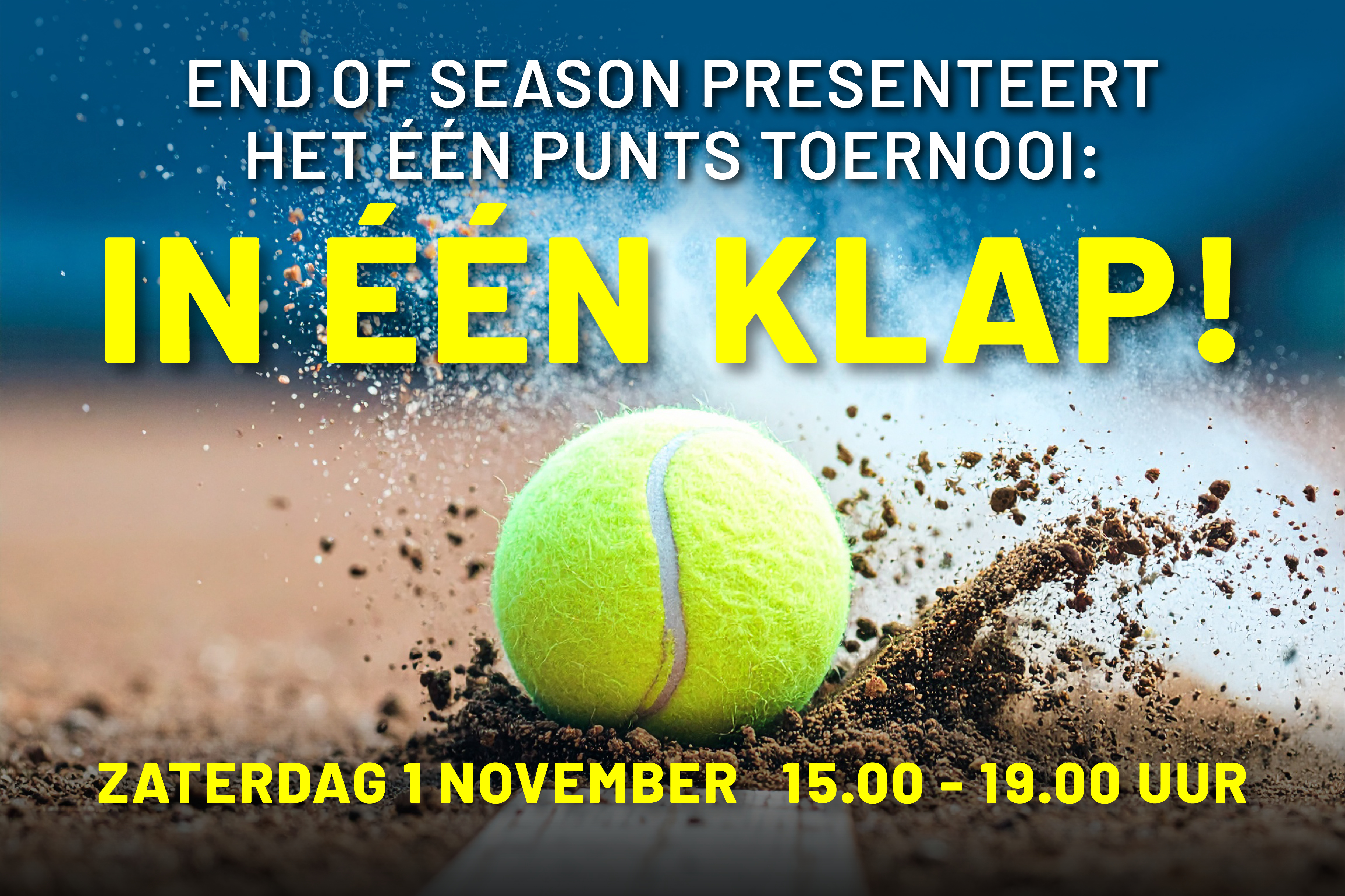 Als afsluiter van een heerlijk tennisjaar met veel zon, gravel en gezelligheid organiseren we het éénpuntstoernooi: IN ÉÉN KLAP.